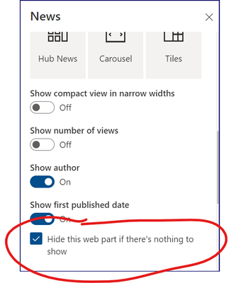 smithme There's usually an option to hide the web part if there's nothing to show. It's definitely on 'News', although maybe not on every web part.