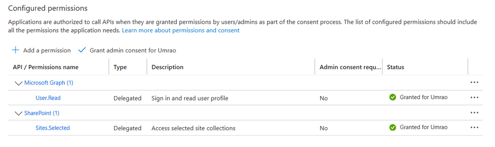 After assigning the Sites.Selected permission to the Azure AD application and granting admin consent, site‑specific access must be assigned once using Microsoft Graph.