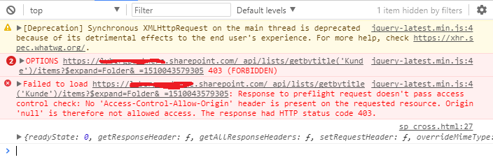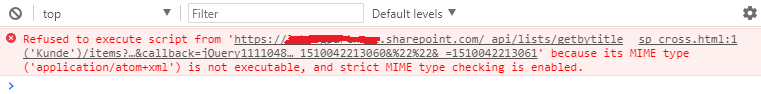 I need to execute CrossDomain REST Request (AJAX) on Sharepoint REST API, and get content as result of this request. My script executed on Browser (Chrome) on wich I logged on Sharepoint.