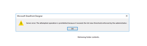 SharePoint Designer error - Exceeds the list view threshold enforced by the administrator