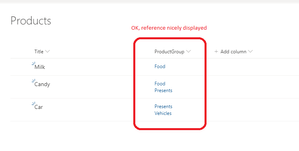 1) Products table with Groups field as a multiple lines of text