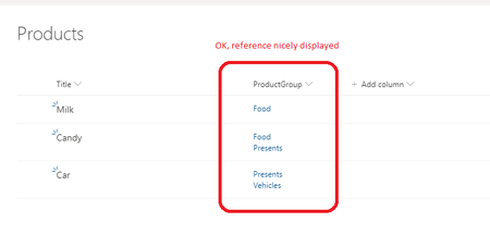 - For each record in ProductGroup and for each record in its Products lookup field find matching record in Prouducts table and update its Groups text field (concatenate with previous value) with link to particular ProductGroup. This is just an example of updated field value: