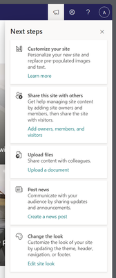 SharePoint online - Disable "Select a template" welcome message and "Next steps" tips pane