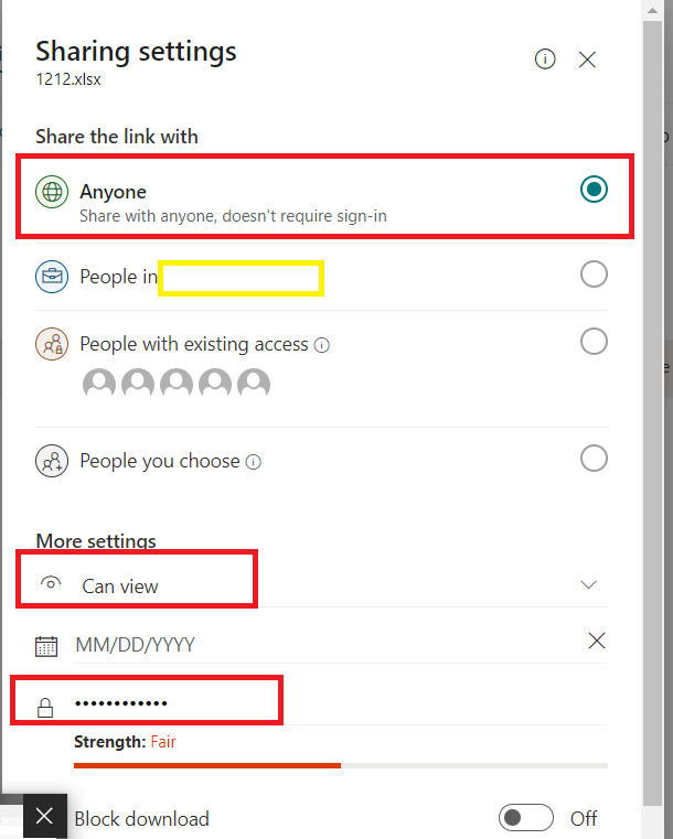 - Anyone link with Read-Only permission + Password