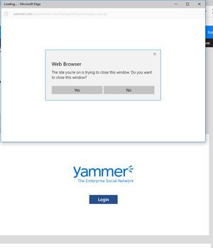 I use a yammer embedded feed on our intranet homepage, works fine in all browsers except edge. Users experience in Edge is that they are prompted to login, and when they click the button they get a p...