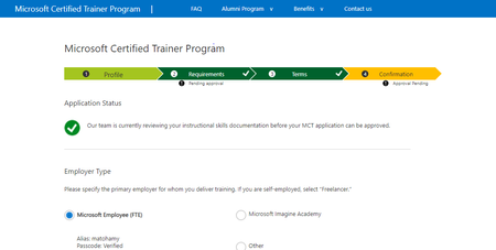 Hello, I am just checking in on the status of my MCT. I applied back in February if I am not mistaken, but my application still has not been approved. I have the Microsoft administrator associa...