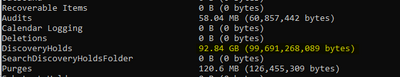 To find whether this discovery holds folder is completely full, use the below-mentioned command. Step 1: Connect-ExchangeOnline and then, Step 2: Get-MailboxFolderStatistics -Identity us...