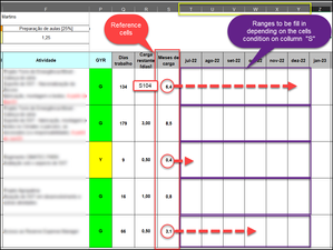 Macro VBA Excel - Reference to a range of conditioned cells to fill in in other side cells