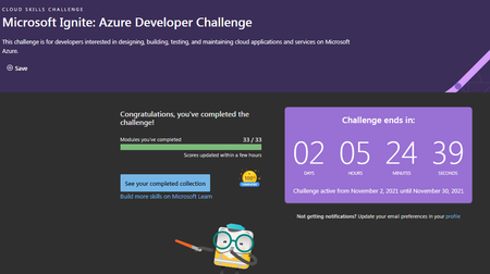 Hello everyone, I have just completed Microsoft Ignite: Azure Developer Challenge November 2021 but I didn't receive any email regarding the completion of the challenge or any Badge of completion (s...