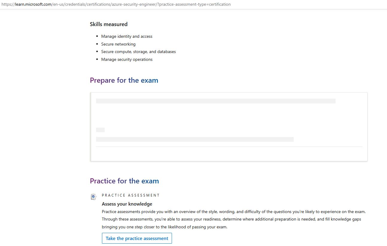 What's going on with the Microsoft Certified: Azure Security Engineer Associate certification? The "Prepare for the exam" box in the certification's page is empty, like there's no exam preparation resource.