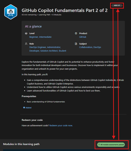 Problem generating certificate for the GitHub Copilot Fundamentals Part 2 of 2 learning path