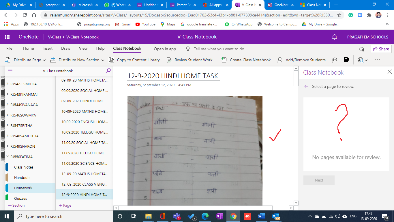 From yesterday onwards when teaches are trying to review the HW's in Class Notebook, we are getting an error that "no pages available here". But they are trying to distribute HW's to students and students are able to send completed HW's. It is happening only for one class.