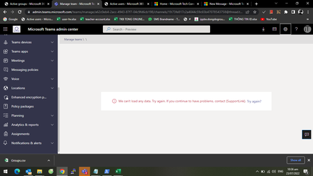 Teams Channel Problem "We can't load any data. Try again. If you continue to have problems, contact"