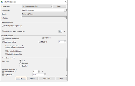 sql server rebuild index task problem