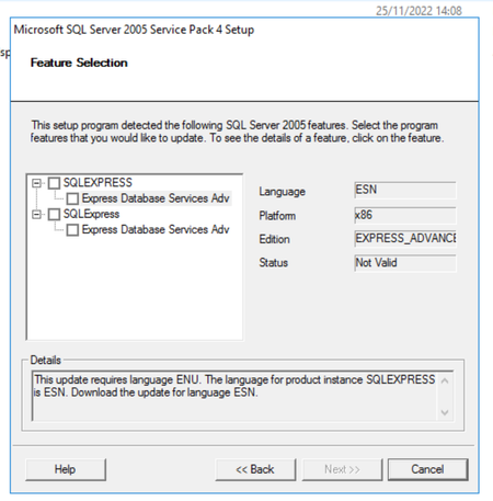 I want to perform inplace upgrade on existing SQL Server 2005 Express (SP3) with Advanced Services (x86) ESN (Spanish)