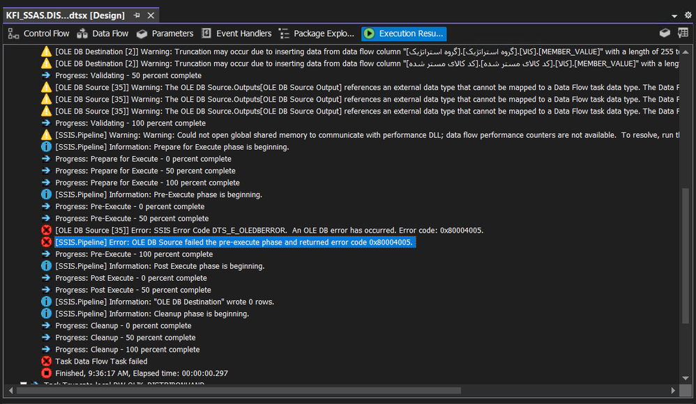 Error 0x80004005 during SSIS package execution with SSAS source