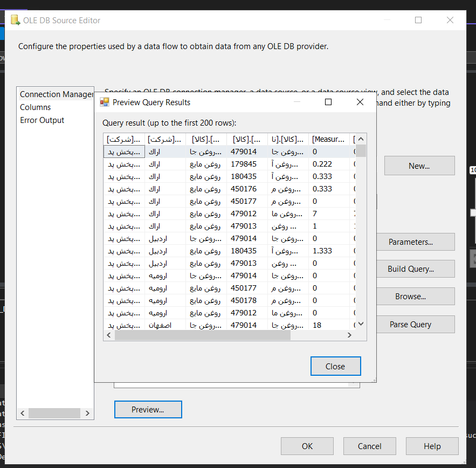 But data flow task fails on OLE DB Source as follows: