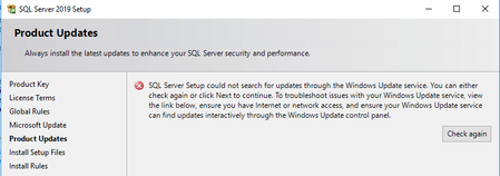 Hi, We're trying to install Sql Server 2019 on a server. This server has access to our internal WSUS server, but does not have access to Microsoft's Windows Update service. When we try to do the i...