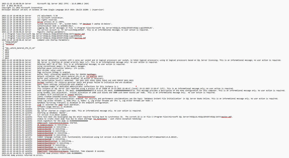 Error description: Wait on the Database Engine recovery handle failed. Check the SQL Server error log for potential causes. - SezMeCopper Contributor