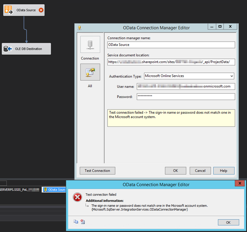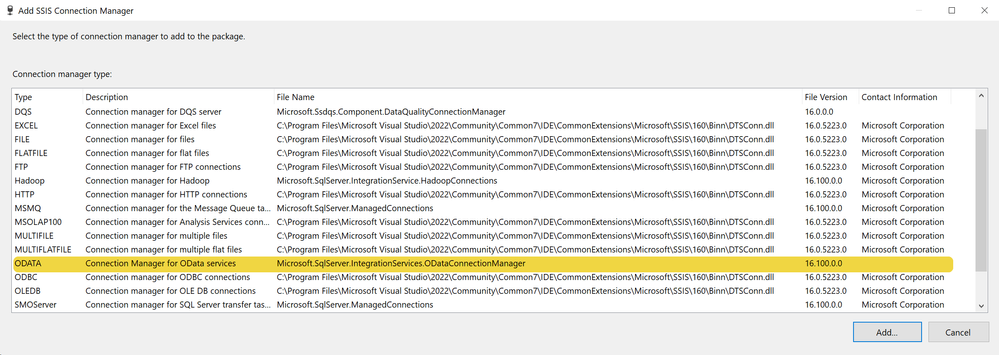 SSIS OData Connection Manager Error SQL Server 2022