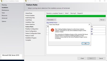I'm trying to install Polybase on an instance that is installed in a VM on Azure, but I keep receiving the following error: Even though the services are active and everything necessary is inst...
