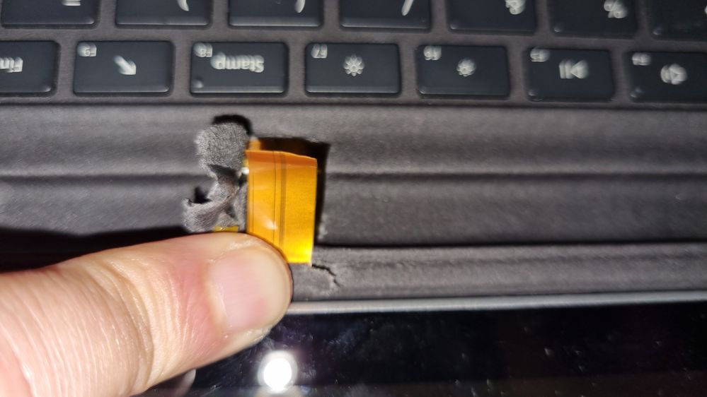 Instead, I decided to look into the issue myself and discovered that the flex cable connecting the keyboard’s connector was cleanly cut right after the pen holder slot, which is made of metal.
