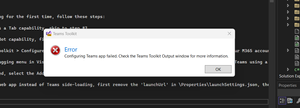 Configuring Teams app failed · Issue #5104 · OfficeDev/TeamsFx (github.com)