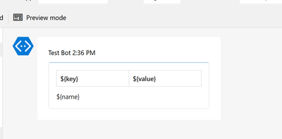 { "type": "AdaptiveCard", "$schema": "http://adaptivecards.io/schemas/adaptive-card.json", "version": "1.5", "body": [ { "type": "Table", "columns": [ { "width": 1 }, { "width": 1 } ], "items": [ { "$data": "${data}", "type": "TableRow", "cells": [ { "type": "TableCell", "items": [ { "type": "TextBlock", "text": "${key}", "wrap": true } ] }, { "type": "TableCell", "items": [ { "type": "TextBlock", "text": "${value}", "wrap": true } ] } ] } ] }, { "type": "Container", "items": [ { "type": "TextBlock", "$data": [ { "name": "Matt" }, { "name": "David" }, { "name": "Thomas" } ], "text": "${name}" } ] } ] }this one is from your reply ^
