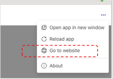 Is there any way to open "Go to website" menu at the top right of Teams Desktop