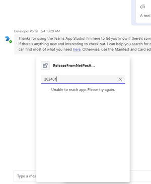 Message extension based on API throwing "Unable to reach app. Please try again."