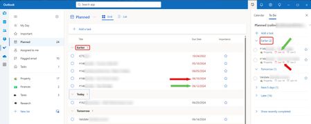 Earlier Tasks in Planned Smart List are different in Outlook To Do