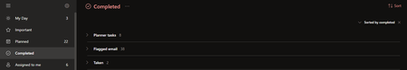 By default, when selecting Completed, we see all completed tasks per list or per bucket. Its not easy to see all completed tasks of last week. When you would remove this grouping, the overv...