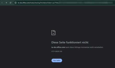 When trying to open a sharing link like https://to-do.microsoft.com/sharing?InvitationToken=px7Tnbu/sharing?InvitationToken=px7Tnbu.... which will redirect to https://to-do.office.com/tasks/sharing?InvitationToken=px7Tnbu/tasks/sharing?InvitationToken=px7Tnbu.... we only ever get HTTP ERROR 500.
