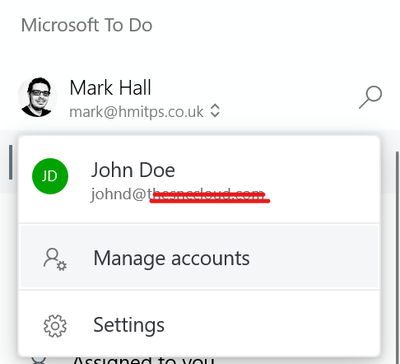 Maybe I'm not understanding your request, but To Do does support multiple accounts.