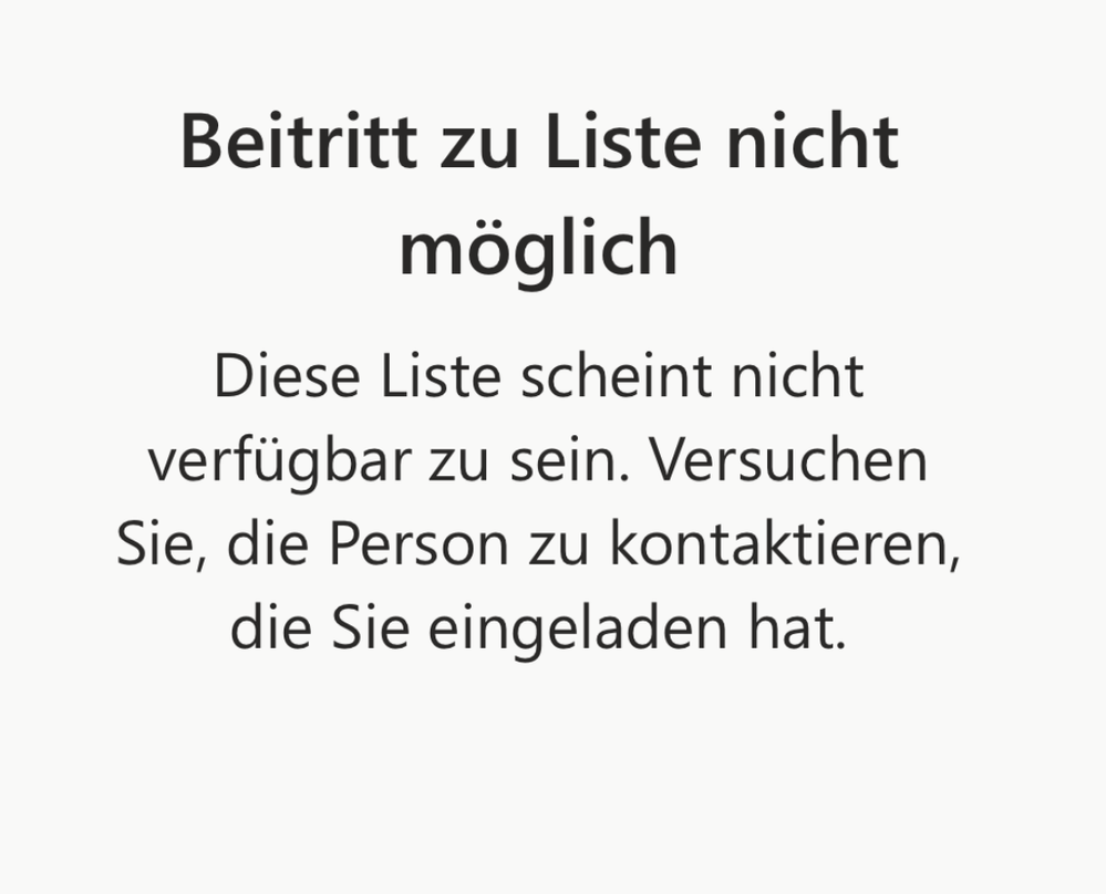 Now, when I send my wife or son an invitation link, they get an error message saying the list isn't available and they can't join.