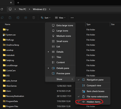 You want to have the tick next to hidden items. Once that is complete, you should be able to see the 'WindowsApps' folder, and you can open that.