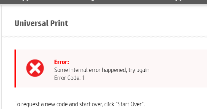 Unable to register HP M430 - Error Code 1