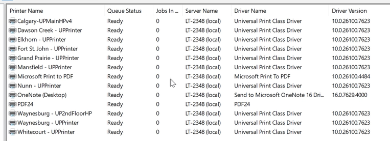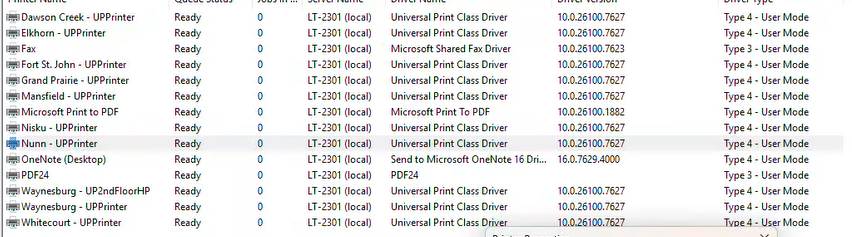 Microsoft support had a look in Print Management on a Windows 11 machine to see the version of the Universal Print Class Driver on machines that could and could not print.