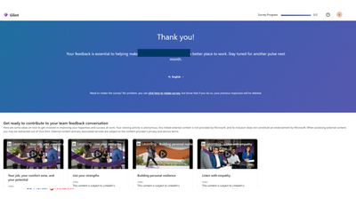 These videos are controlled by a feature in General Settings that can be switched off for all surveys. Learn more about the Employee Post-Survey Action Taking setting here: Manage General Settings in Viva Glint | Microsoft Learn.