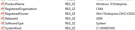 Actually, I have issue with Windows 11 Enterprise 24H2 (64 bits) Display 2009 windows 10 from Version reg key from HKEY_LOCAL_MACHINE\SOFTWARE\Microsoft\Windows NT\CurrentVersion