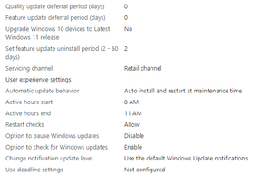 Interesting... the screenshot you have above showed Use Deadline Settings = Not configured, so that's why I thought you weren't using the deadline settings. So, it's probably a good idea to confirm on the device that the deadline settings were configured... for example, on Windows 11 you can go to Advanced options > Configured update policies, and it will show you which ones are configured. On Windows 10, IIRC, it's at the top of the page that some settings are managed by your organization, and a link to see which ones.
