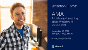 IT pros - join us on November 30th for an opportunity to "Ask Microsoft Anything" (AMA) about Windows 10, version 1709 (aka the Windows 10 Fall Creators Update).