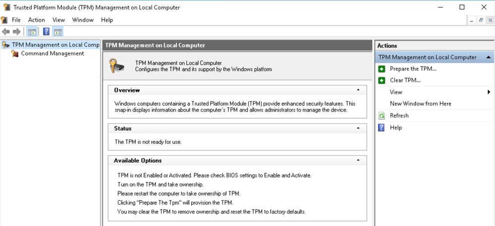 When I bring up tpm.msc, I see the following options: