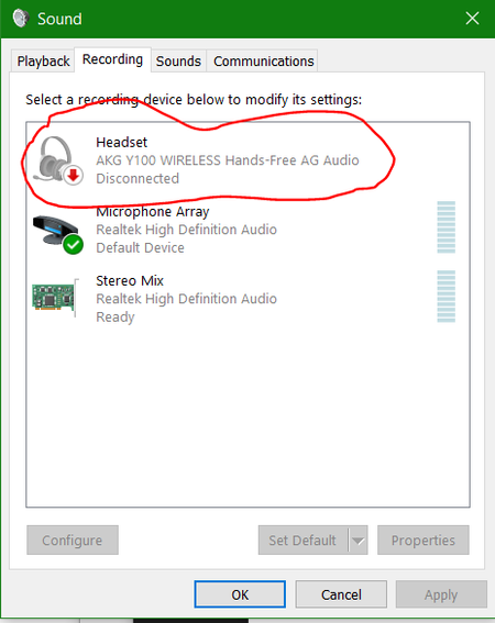 Hi, My AKG Y100 bluetooth was working perfectly for both music and voice on my laptop. After new update, it is connected and I can hear audio but I can't send my voice. It means microphone function ...