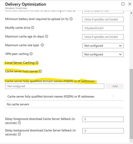 Hi All, when configuring delivery optimization via Intune, there is an option to contact caching servers for downloading the update contents: How do we configure these caching servers? ...