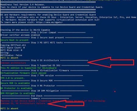 dgreadiness (Device Guard and Credential Guard hardware readiness tool): unknwon architecture