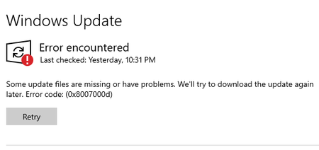 Error message in December 2020 monthly Windows update.