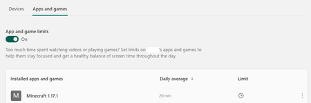 Hello, I'm trying to restrict the time that my child spends on Minecraft via Family Safety but I can't get this to work. When I check my child's screen time online, I can see both, a limit for th...
