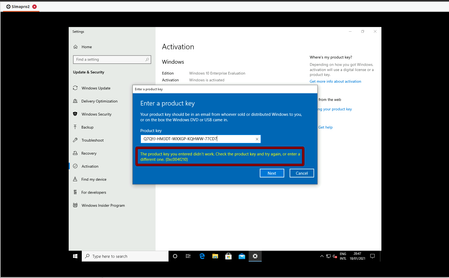 Hi, I downloaded windows 10 enterprise evaluation. Also after testing it I purshased several licenses for it through our reseller. If I now want to active it it gives me the error: Sea...