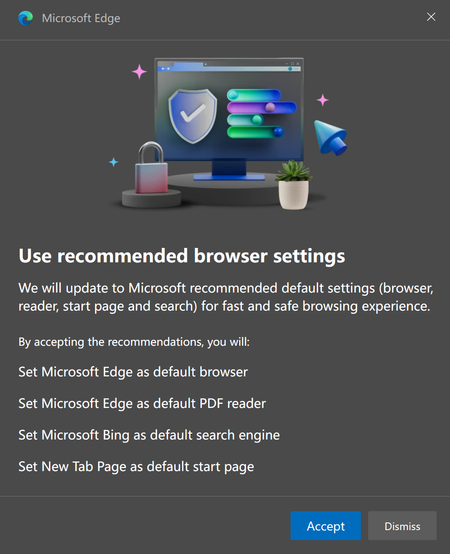 Anybody knows how to stop edge from poping up this browser settings?
